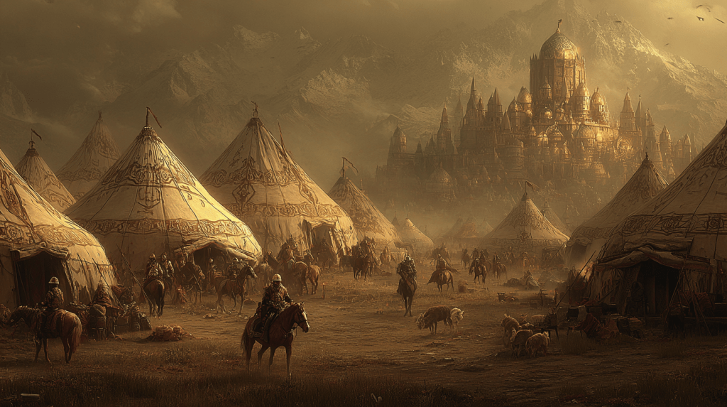 Ey bu satırları okuyan; sanma ki Uçmakanların barınakları, rüzgârda savrulan basit bez parçalarıdır. Onların “Otağ” dedikleri o kubbeli haneler, başlı başına bir hendese harikasıdır. Bu Alemgezerler, “Kerege” dedikleri, birbirine deri kayışlarla bağlanmış ahşap iskeletleri öyle bir hesapla, öyle bir açıyla örerler ki; en şiddetli fırtına bile üzerinden kayıp geçer, rüzgâr tutunacak bir köşe bulamaz. Yuvarlak formları, gökkubbenin yeryüzündeki gölgesi gibidir.