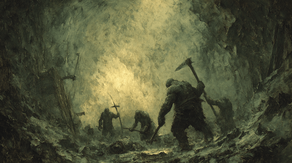 “Gülhan mı?” dedi reis, yere sanki bir mühür basarmışçasına balgam fırlatarak, “O ve yanındaki iki zavallı çoktan -34. kata, yani esfel-i safiline indiler. Lakin uyarayım; aşağısı tekin değildir, raylardaki gıcırtıya kulak verin!”. Madenin ağzında karşılarına çıkan bir azgın ork ve avanesi, R’mal’ın “Kabir Azabı” ismini verdiği o devasa baltasının tek bir savuruşuyla, kurbanlık koyun gibi ikiye biçildi.